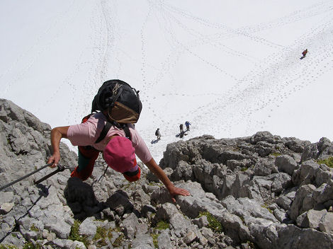 Místy naročný a exponovaný výstup na Steinfeldspitze.